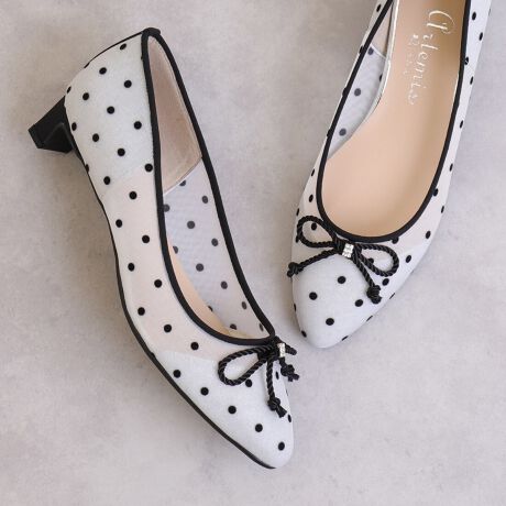 【26春夏新作】リボンモチーフ ドットチュールパンプス