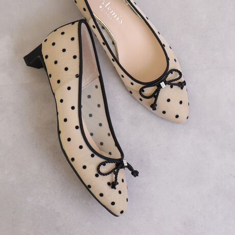 【26春夏新作】リボンモチーフ ドットチュールパンプス