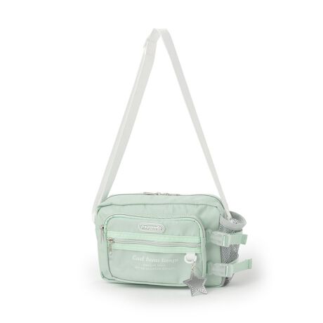 デイリー使いにぴったりなカジュアルショルダーバッグです。星のチャームがついたスポーティーライクなデザインの3色展開。サイドにベルト調節が可能なペットボトルホルダーを設けた、機能性の高いアイテムです。ビニール窓つきのポケットには推しのアイテムなどを入れてアレンジが楽しめます。≪重さ≫F/約206g