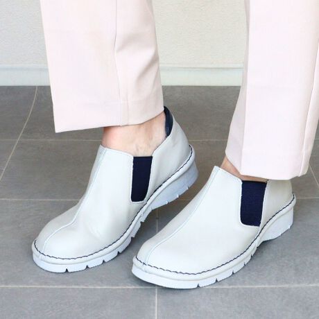 ・継ぎ目を真ん中にすることで甲高の方も足入れしやすく、サイドに大きめのゴムが入っているので脱ぎ履きも楽ちん