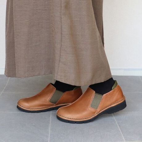・継ぎ目を真ん中にすることで甲高の方も足入れしやすく、サイドに大きめのゴムが入っているので脱ぎ履きも楽ちん
