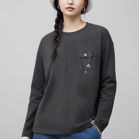 ベーシックなクルーネックデザインに、LOGOSParkらしい実用性とアクセントを加えた一着。