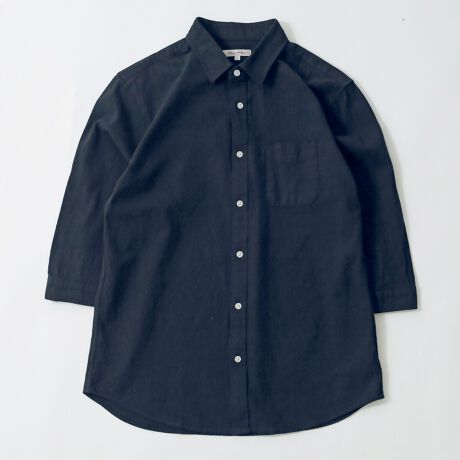 ベーシックなワイシャツデザインをベースに、軽快な印象の7分丈スリーブを採用。程よく腕まわりが見えることで、抜け感のあるスタイルを演出します。左胸には実用性のあるポケットを配置し、シンプルながらも使い勝手の良い仕上がりに。カラーはホワイト、ブラック、ブルー、ネイビーに加え、爽やかな印象のホワイトストライプ、ネイビーストライプを含む豊富な6色展開。無地と柄のどちらも揃い、シーンや好みに合わせて選べます。