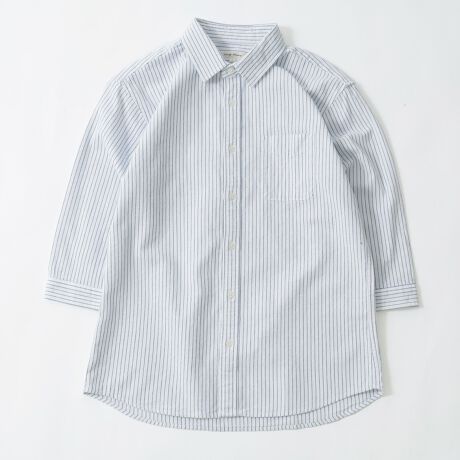 ベーシックなワイシャツデザインをベースに、軽快な印象の7分丈スリーブを採用。程よく腕まわりが見えることで、抜け感のあるスタイルを演出します。左胸には実用性のあるポケットを配置し、シンプルながらも使い勝手の良い仕上がりに。カラーはホワイト、ブラック、ブルー、ネイビーに加え、爽やかな印象のホワイトストライプ、ネイビーストライプを含む豊富な6色展開。無地と柄のどちらも揃い、シーンや好みに合わせて選べます。