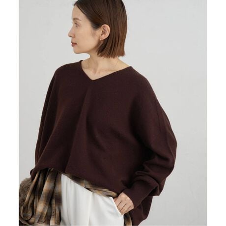 程良い開きのネックが女性らしい、着回し力抜群のニット。