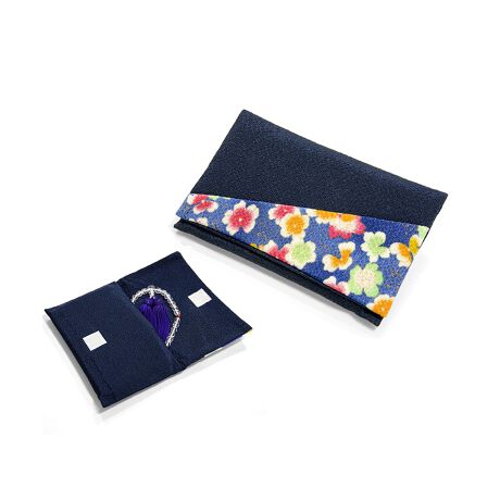 無地のちりめん生地に花柄ちりめん生地をミックスさせた上品な数珠袋です。