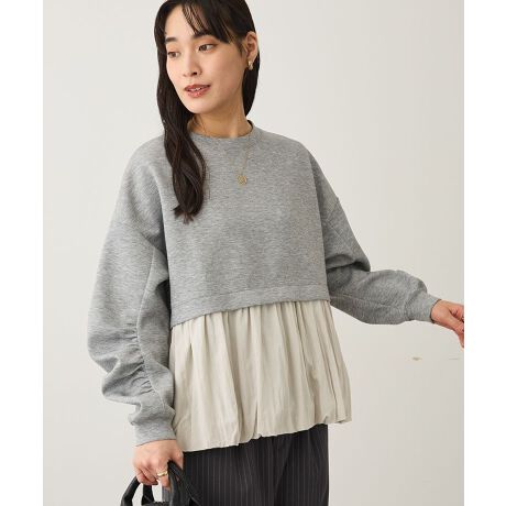 バルーンヘムと異素材ミックスが生む軽やかな表情が魅力です。上身頃はカットソーのリラックス感、裾は布帛の柔らかなボリュームで、一枚でこなれた印象になります。袖のギャザーがさりげなく華やかさを添え、クルーネックとゆったりシルエットで着心地も快適です。ヒップラインをやさしくカバーする丈感と前後のバランスで、細身のパンツやロングスカートと相性抜群。デイリーからオフィスカジュアル、週末のお出かけまで万能に使え、コーディネートの幅を広げてくれます。