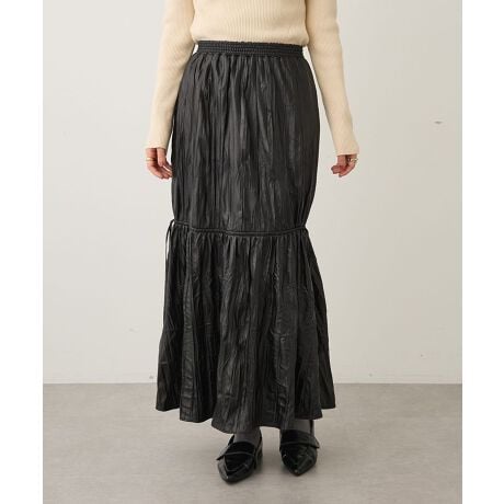 しなやかなレザーライク素材が表情を添えるギャザースカートです。表面のシボ感と穏やかな光沢が上品な印象を生み、たっぷり寄せたギャザーが動くたびに美しいドレープを描きます。ロング丈は脚のラインをカバーしつつ縦長シルエットを強調するため、スタイルアップ効果が期待できます。ウエストゴム仕様で着脱が楽にでき、長時間でも快適に過ごせます。ニットやカットソーでラフにまとめたり、ジャケットやブーツと合わせてきちんとした装いにも対応する万能アイテムです。異素材とのコーディネートで季節感を取り入れやすく、日常の着回し力を高めます。