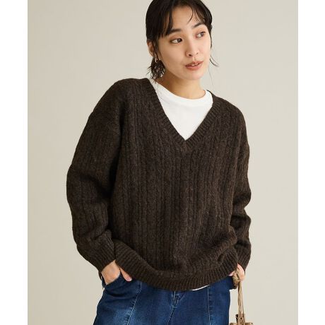 <b>*ケーブルとVネックでつくる上品な温もり。</b>