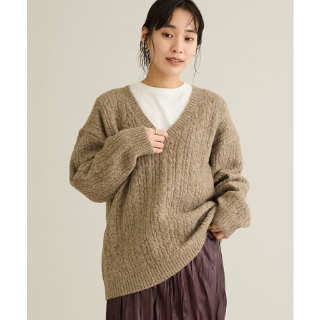 <b>*ケーブルとVネックでつくる上品な温もり。</b>