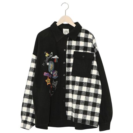 フロントにワッペン風の刺繍を大胆にあしらい、さらにチェック生地を