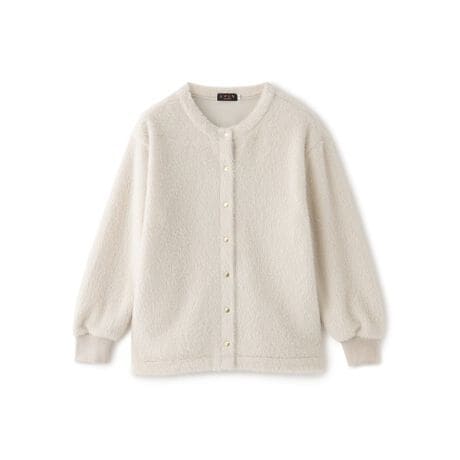 [型番:U7P18697__]【L】【ウォッシャブル】テディファーカーディガンこちらはラージサイズです。素材の魅力を引き立てた、シンプルで着回しやすいクルーネックカーディガン。見た目にも温かみがあり、寒い季節にさっと羽織れる便利な一枚です。優しいペールトーンの色合いで、コーディネートを華やかに見せるアイテムです。【素材】ウールの様な温かみとヘアリーで膨らみのあるジャージー素材。程よくつやのあるファーの美しい風合いが魅力です。(秋冬展開商材)