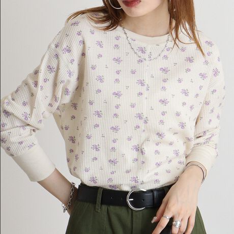 ビンテージテイストがかわいい小花柄の切り替えL/S-Teeです