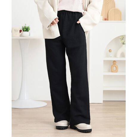 ウエストはゴム仕様なのでストレスフリーに着用でき、シルエットも美しいため、リラックスタイムやお出かけにもぴったりです