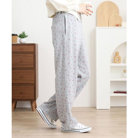 柔らかく軽いガーゼ裏毛に可愛らしい花柄をあしらった、おしゃれで快適なカットソー素材のパンツです