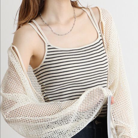 ベーシックな配色で色々な着こなしに合わせやすいボーダー柄のキャミソールです