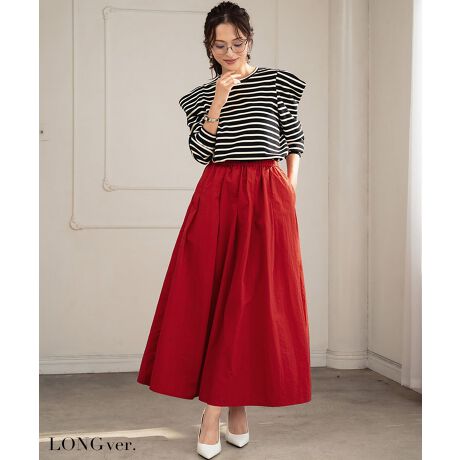 【選べる着丈】タフタギャザーフレアスカート ロング 秋 冬 ゴム