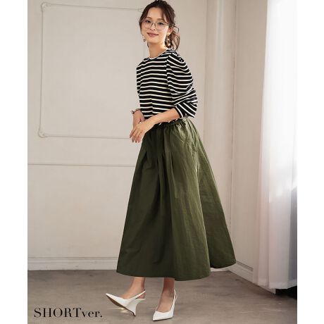 【選べる着丈】タフタギャザーフレアスカート ロング 秋 冬 ゴム