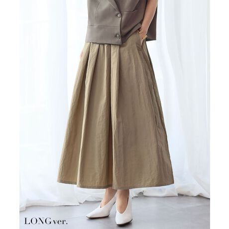 【選べる着丈】タフタギャザーフレアスカート ロング 秋 冬 ゴム