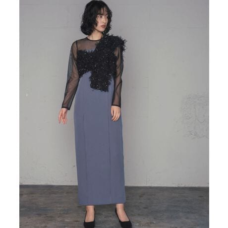 存在感のあるラメ生地を使用したノットデザインが目を惹く一着。