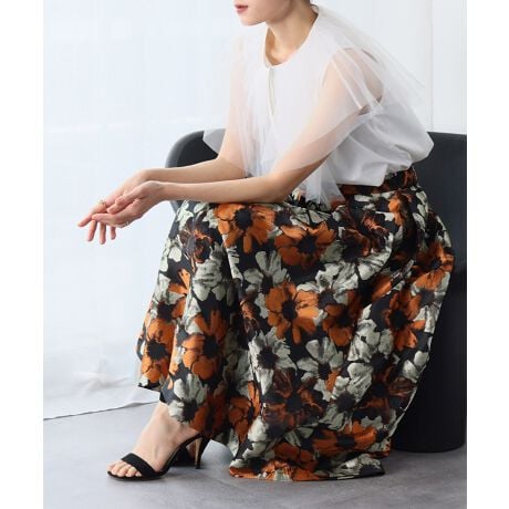フラワージャガードタックフレアスカート