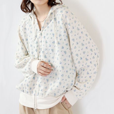 ドルマンスリーブとバルーンシルエットがかわいい、フルジップパーカです