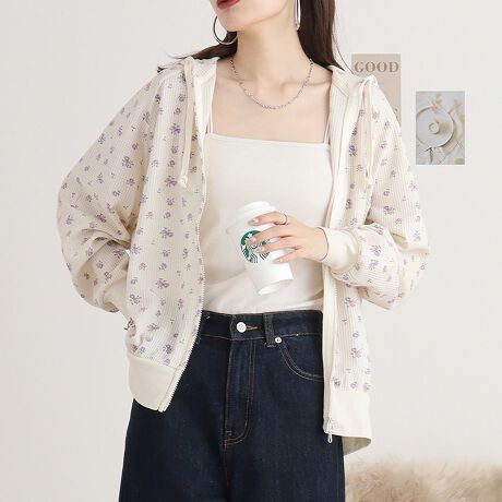 ドルマンスリーブとバルーンシルエットがかわいい、フルジップパーカです
