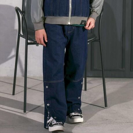 スリット開きで着こなし自在の男の子用ワイドデニムパンツ。