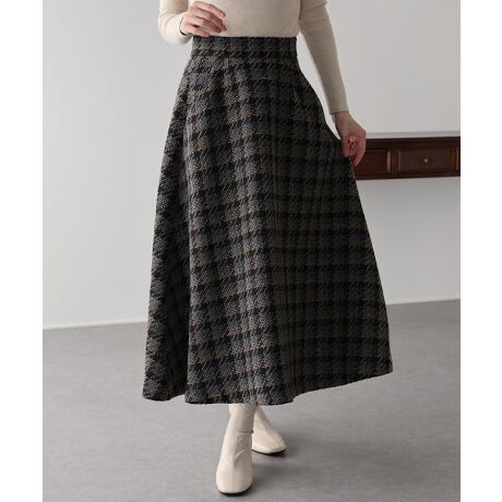 表情豊かなツイード素材に、クラシカルなチェック柄をのせた大人可愛い主役級スカート。