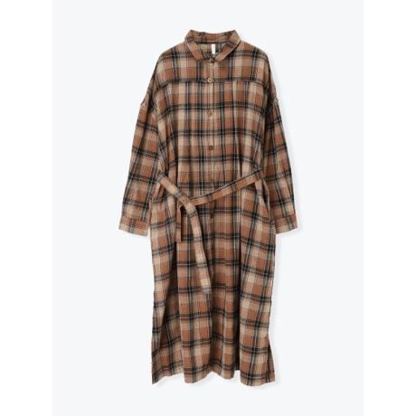 [型番:25410695489]起毛感のあるネル素材を使用した、あたたかみのあるチェックワンピース。程よくゆとりのあるシルエットで、一枚でも羽織りとしても活躍します。共布ベルトでウエストマークすれば、メリハリのある着こなしに。ブーツ合わせで季節感のあるスタイルがおすすめです。Hare no hi/ハレノヒ