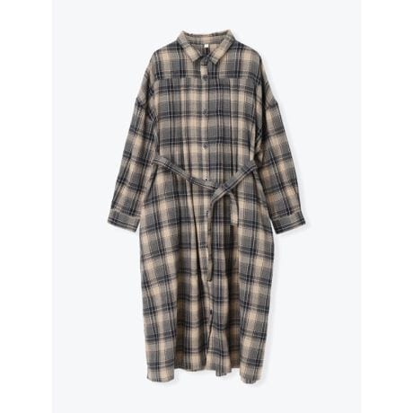 [型番:25410695489]起毛感のあるネル素材を使用した、あたたかみのあるチェックワンピース。程よくゆとりのあるシルエットで、一枚でも羽織りとしても活躍します。共布ベルトでウエストマークすれば、メリハリのある着こなしに。ブーツ合わせで季節感のあるスタイルがおすすめです。Hare no hi/ハレノヒ
