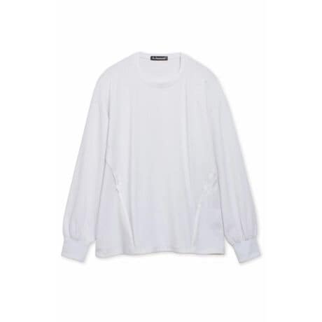 大胆なカッティングとボリュームシルエットを組み合わせた、存在感のあるオーバーサイズトップス。