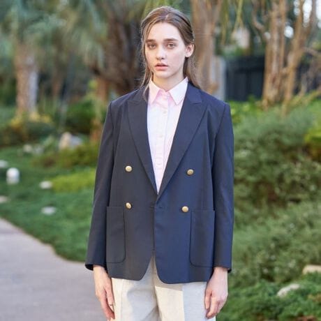 ●金ボタン使いがトラッドな印象のマニッシュなジャケットで、羽織るだけで今っぽく決まる。