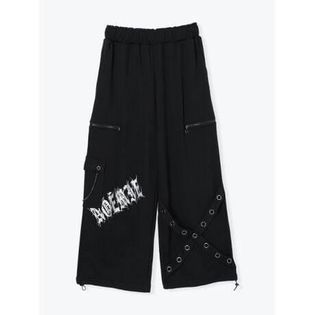存在感のあるデザインが目を惹く、ゴシックムード漂うワイドパンツ。