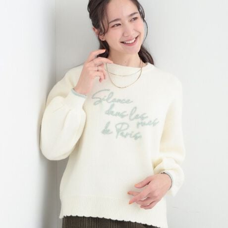 スウェットライクなアイテム感を冬ニット素材で表現しています。