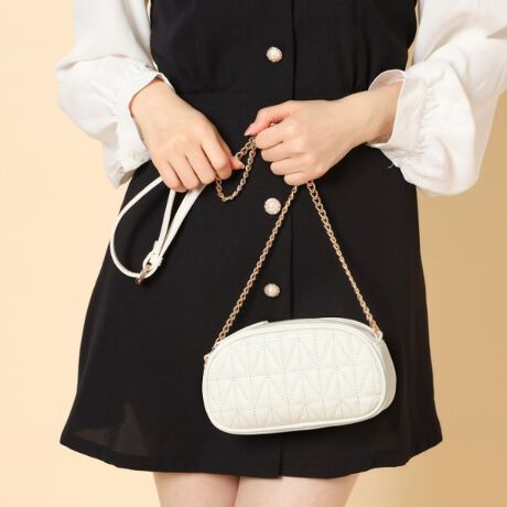 キルティング素材が可愛いチェーン使いのショルダーバッグ。