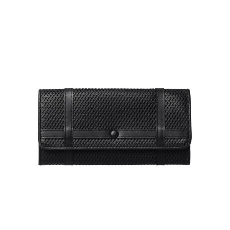 スナップボタンを1つはずすだけで、お札、小銭、カード全てが取り出せ、より薄さを追求した長財布です。