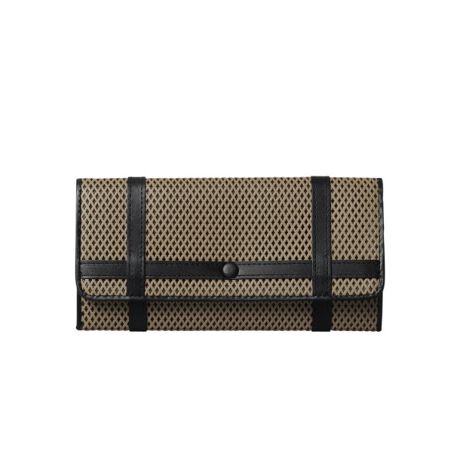 スナップボタンを1つはずすだけで、お札、小銭、カード全てが取り出せ、より薄さを追求した長財布です。