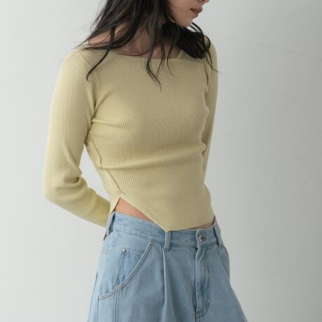 モダンな印象を与えるリブ素材のトップス。
