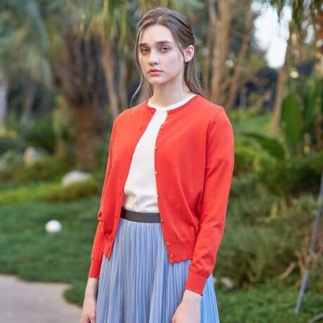 【キラリと光る金ボタンがアクセント。ハンドウォッシャブルできるコットンシルクのカーディガン】