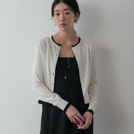 ワイドパンツやスカートとの組み合わせで、リラックスした中にもエレガンスを感じるスタイルに。