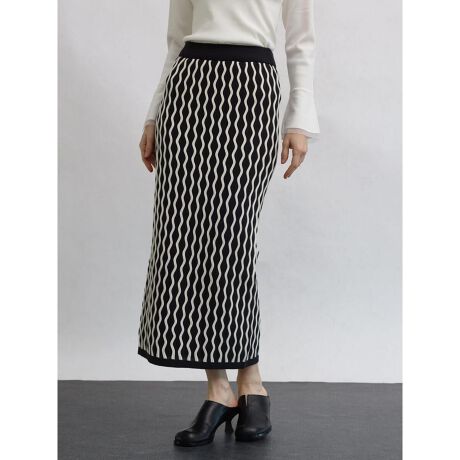 視線を惹きつける配色のウェーブラインが印象的なニットスカート。ジャガード織りで表現した柄が凹凸を出し、ジャガードならではの存在感を放ちます。身体のラインに沿ってすっきりとフィットしつつ、伸縮性のある素材が動きやすさをサポート。1枚で主役になるデザイン性の高さが魅力で、ブーツやパンプスを合わせることで秋冬らしいコーディネートが完成します。