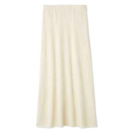 シルエットはゆったりと広がるフレアラインで、フラットな編み地はしっかりと厚みもあり、一枚で着映えするアイテム。程よい光沢感でシーズンムードも高めてくれます。