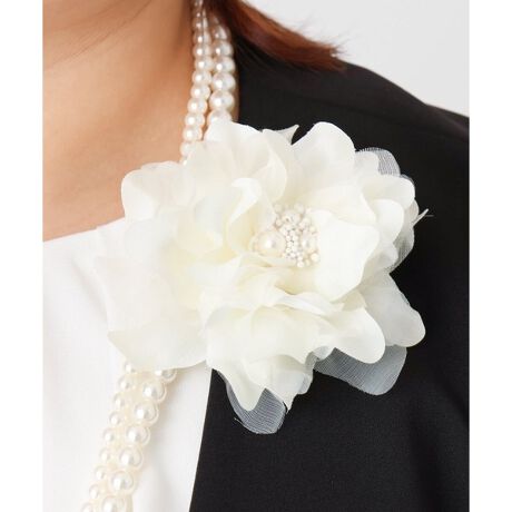 [型番:OZ2BD45054]お顔周りをパッと華やかに演出するコサージュ付きパールネックレス。シンプルなロングネックレスは、大きさの異なるパールを2連デザインで仕上げたデイリーにお使い頂けるひと品です。コサージュは、ふわっと柔らかな印象のフラワーにエコパールでアクセントをプラス。ピン&クリップタイプで使い勝手も抜群です。結婚式や入学式など幅広いシーンに活躍してくれるおすすめのアイテム。