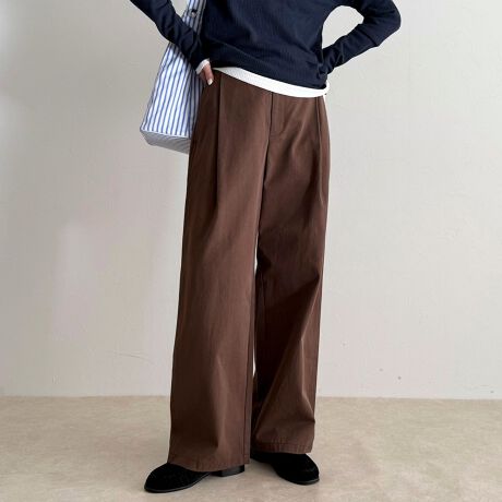 ・タックを効かせたデザインで脚長効果を叶えるチノタックパンツ