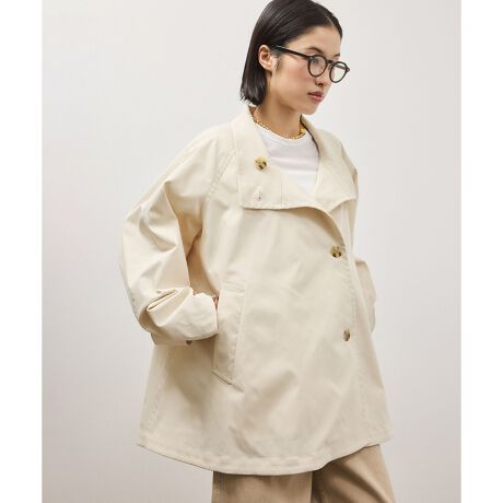 スタンドカラーで着ても、前を開けてリラックスな雰囲気にも、マニッシュにも女性らしくも叶う万能な一着。