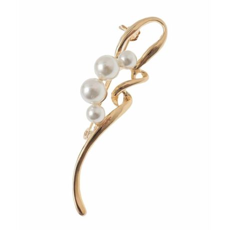 [型番:OZ2BD40029]柔らかなニュアンスカーブを描くデザインブローチ。メタルバーにフェイクパールをあしらうことでより柔らかな印象をプラスします。セレモニーシーンにはもちろんデイリースタイルにも最適。程よいサイズ感で目立ちすぎず、品良くスタイリングに馴染んでくれるプラスワンアイテムです。