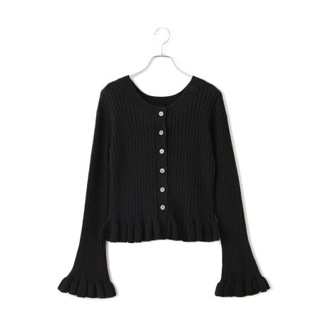 裾と袖にたっぷりと施したフリルディテールがポイント。