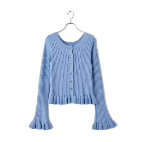 裾と袖にたっぷりと施したフリルディテールがポイント。
