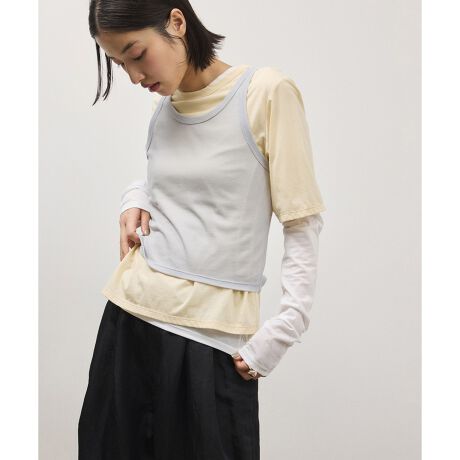 ロンT、Tシャツ、タンクトップの3つがセットになった汎用性の高いトップス。